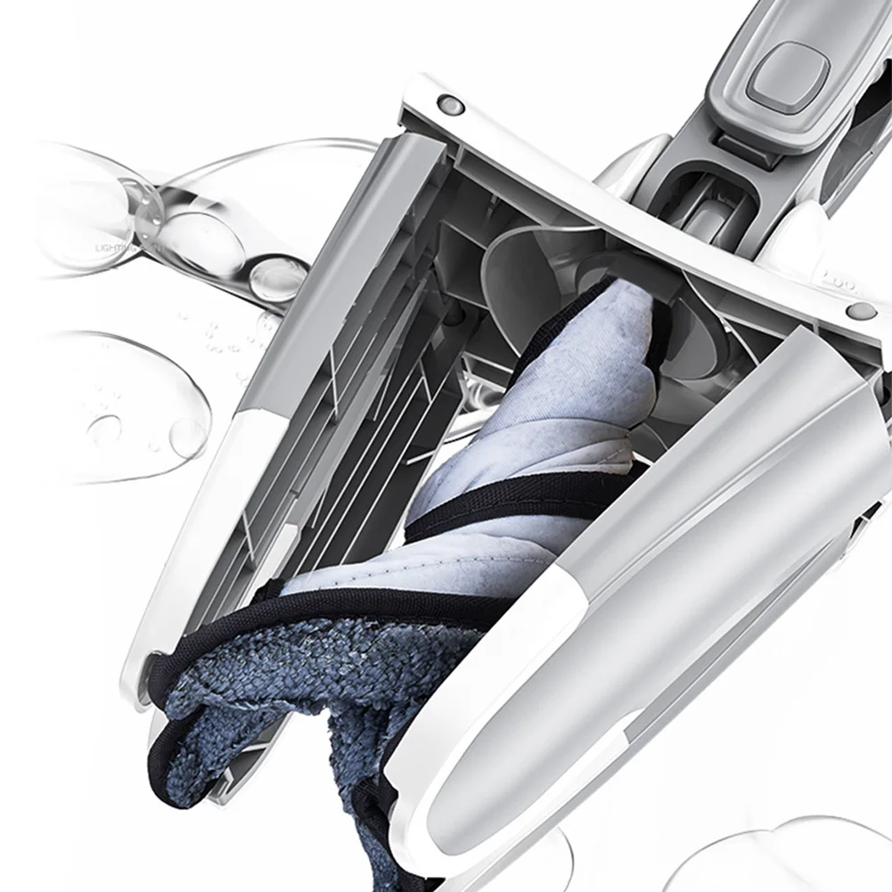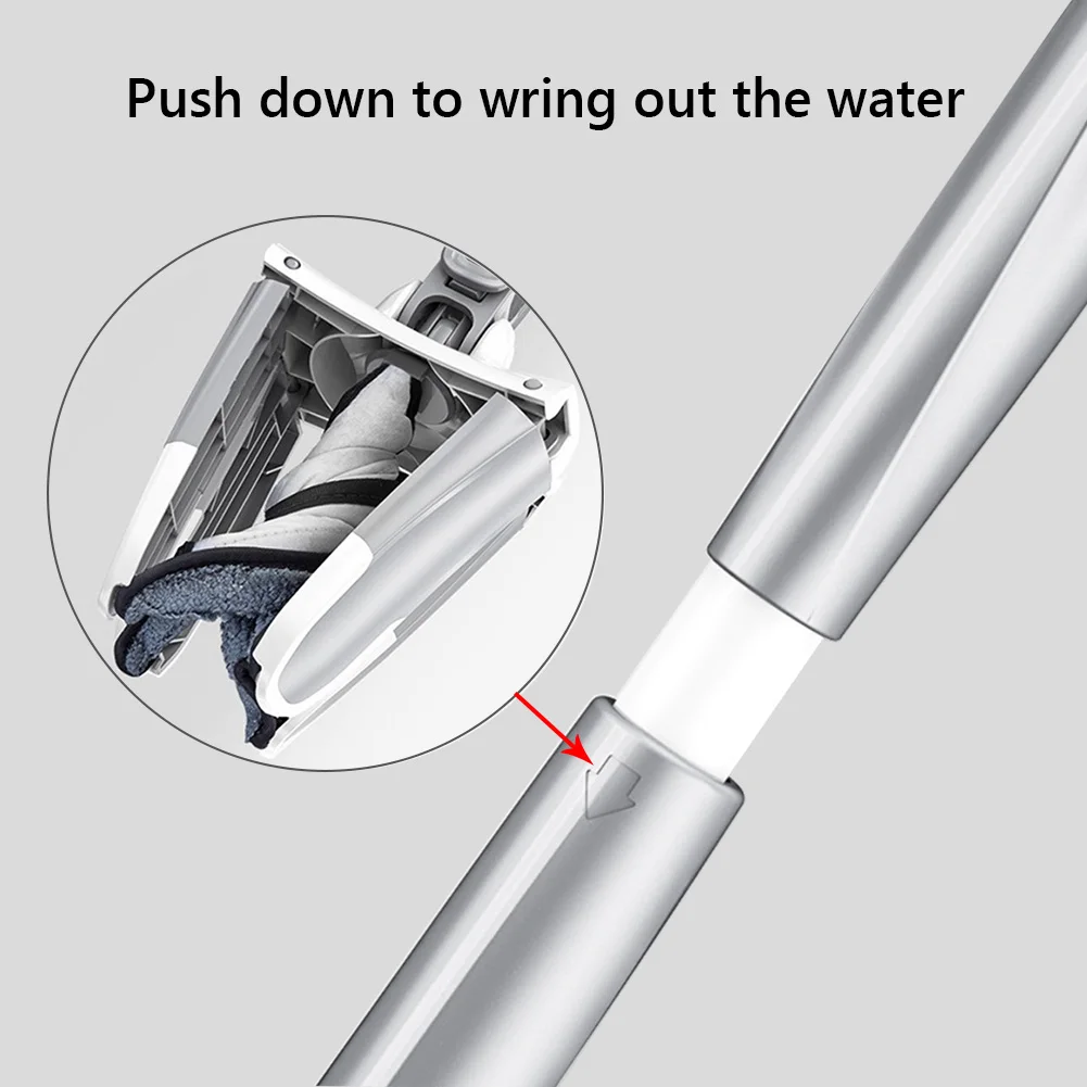 Easy cleaning design, push down to twist, easily get the resemble hand twist effect to dry the water on the mop cloth. Dehydration Rate up to 90% -100%.